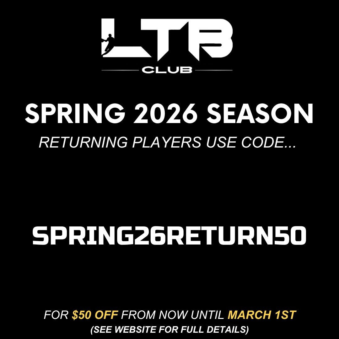 This offer is for returning players only. Any player who has played in our program for a full three month season is considered a returning player. The discount offer will run through March 1st.