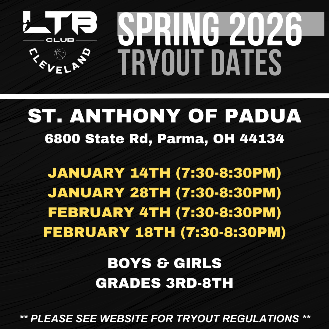 ** Players who play for a public school team, in grades 7th & 8th, are not permitted to attend our tryouts if they are currently in season. These players can attend tryouts once their season is over.